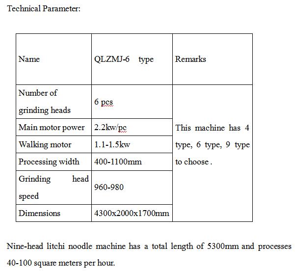QLZMJ-6 full-automatic continuous litchi noodle machine. The replaceable grinding head is used for plate polishing and washing antique selection. The control system of this machine adopts advanced PLC, touch display screen, and full intelligent control. Conveyor belt continuous running mode, horizontal beam linear rail swing operation, high processing accuracy, stable performance, simple operation, fully automated control slate successfully completed in one pass, this series of products has a copy function, dual gas control, plate thickness (15MM-80MM) Can be processed, not easy to break the board.